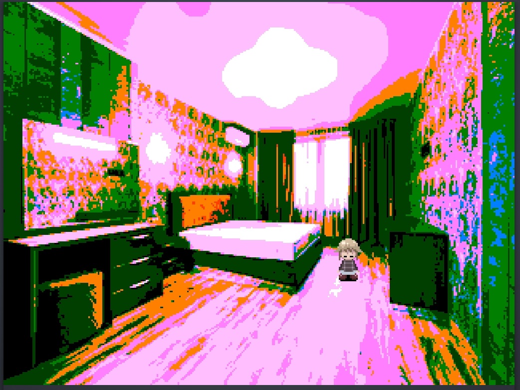 ドット絵であったとしても、このようにノイズを付けて見にくくすることで、写真を見ているようになり、良い演出になる。