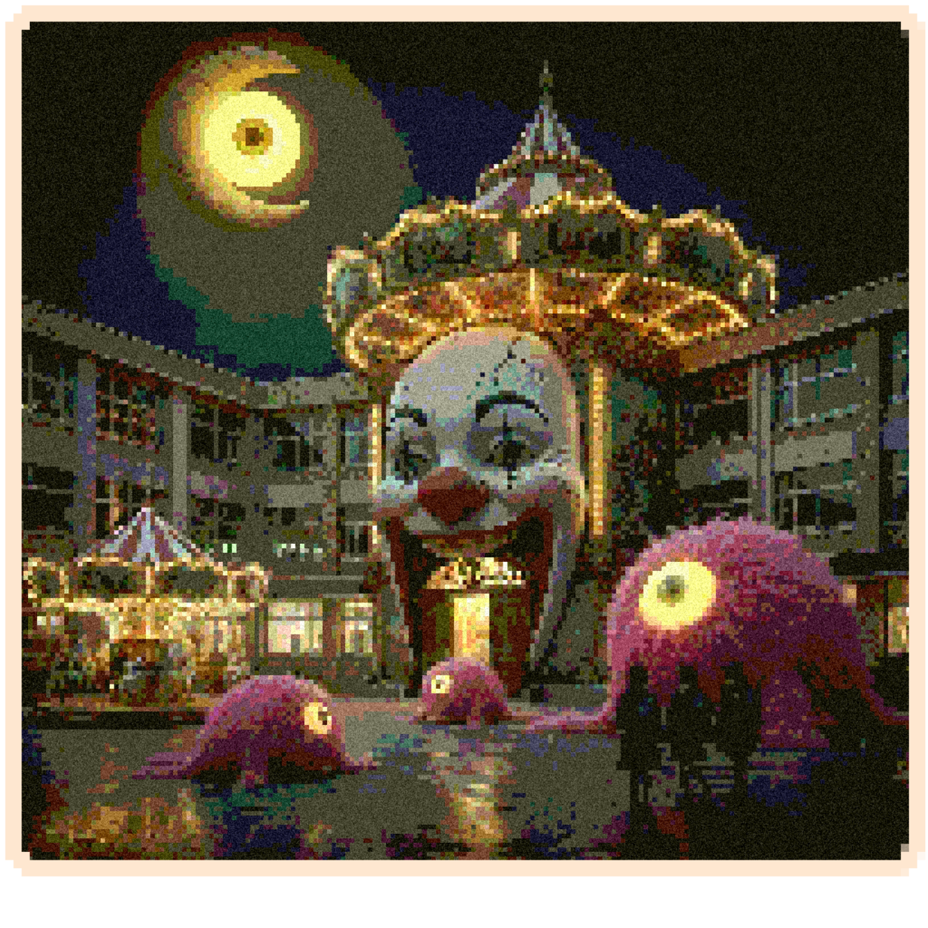 ドット絵であったとしても、このようにノイズを付けて見にくくすることで、写真を見ているようになり、良い演出になる。